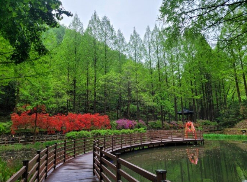 다양한 수종의 나무와 꽃들이 어우러진 정원으로, 산책로를 따라 자연을 감상할 수 있습니다.